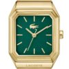 Ürün Bilgisi Cinsiyet: Kadın Marka: Lacoste Model: Rene Çalışma Şekli: Quartz Garanti: 2 Yıl Kasa Yapısı Kasa Renk: Altın Rengi Kasa Çapı: 23 mm Kasa Kalinlik: 7 mm Kasa Şekli: Sekizgen Kasa Materyali: Çelik Kasa Taşı: Yok Cam Özellik: Mineral Tarz: Klasik Saatler Kadran Yapısı Kadran Renk: Yeşil Kadran Tipi: Analog Kadran Taşı: Yok Kadran Işık: Yok Kordon Yapısı Kordon Rengi: Altın Rengi Kordon Özellik: Çelik Kordon Uzunluğu: 19 cm Kordon Genişliği: 14 mm Özellikler Su Geçirmezlik: 5 ATM Kronometre: Yok Takvim: Yok Alarm: Yok